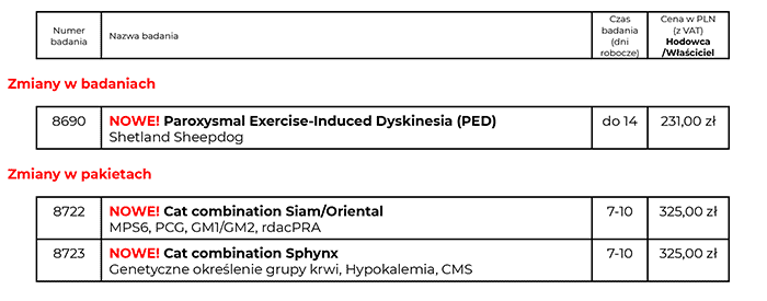 Wersja katalogu z cenami dla lekarzy weterynarii dostępna jest na żądanie. Napisz do nas na lab.warszawa@laboklin.pl lub genetyka@laboklin.pl i prześlemy Ci aktualną wersję.