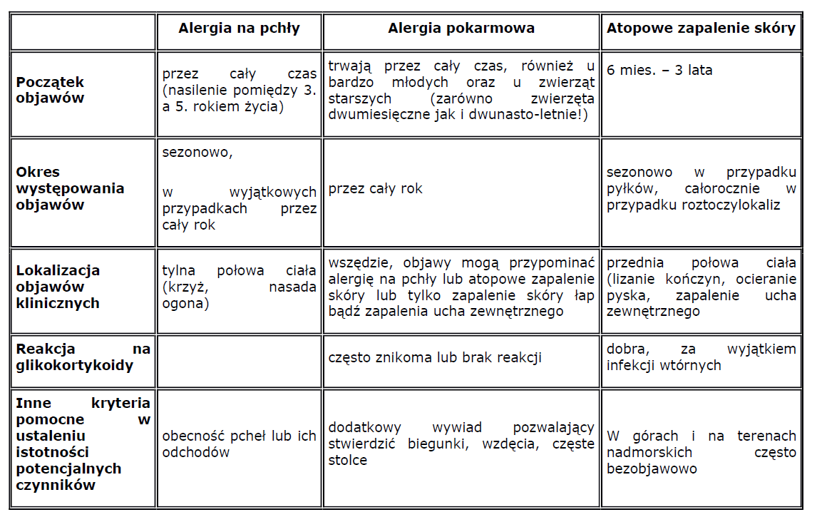 Informacje znajdujące się poniżej z całą pewnością ułatwią postawienie prawidłowego rozpoznania. W ustaleniu przyczyny choroby alergicznej bardzo duże znaczenie ma przeprowadzenie gruntownego wywiadu, który umożliwi przedstawienie listy cząstkowych rozpoznań różnicowych. W rozpoznaniu różnicowanym należy zawsze wziąć pod uwagę infekcję świerzbowcem. Świerzb u psów może dawać niewielkie objawy kliniczne, co może znacznie utrudnić postawienie rozpoznania.